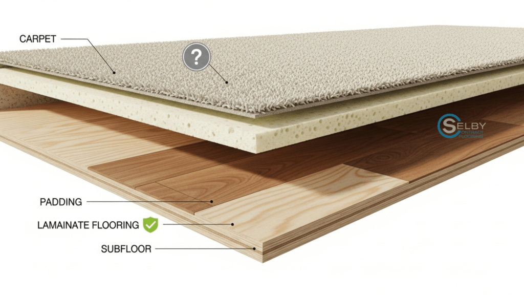 In most situations, removing laminate flooring first allows carpet to be installed directly on the subfloor, creating a more stable and professional finish. This approach also helps avoid issues related to floor height, carpet movement, and long-term durability.