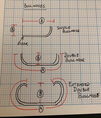 In the case of the single bullnose in the example below, measurement A will still need to have the riser measurement included or it will not fit correctly.