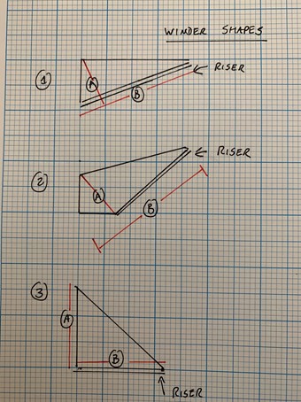 The measurement for the depth of each winder should include the riser as well as the tread to give the full measurement.
