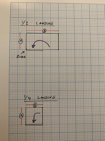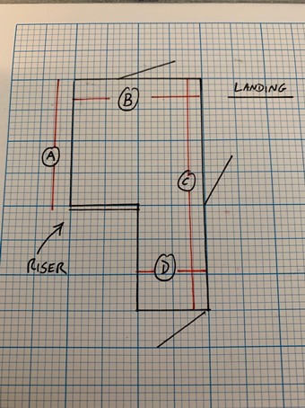 If the landing is a complicated shape, make sure you get all the measurements you can to make your plan more accurate and efficient. In the example below you would need all 4 measurements for an efficient plan.