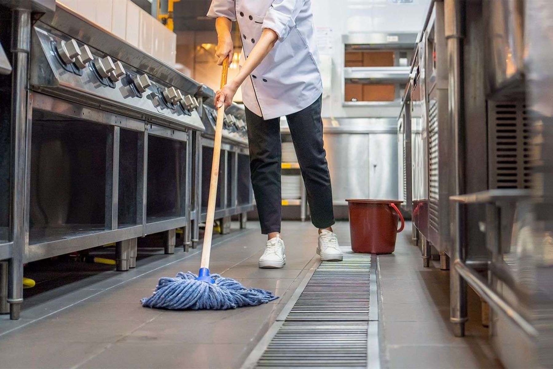 Slip-resistant cleaning solutions designed to maintain hygiene and meet safety regulations in restaurants and catering spaces.