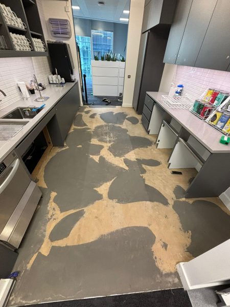 Following a flood in a corporate bank’s t-point at the Bank of Canada in Liverpool Street, we were called in for an emergency flooring replacement.