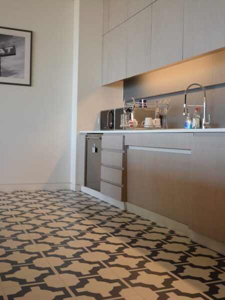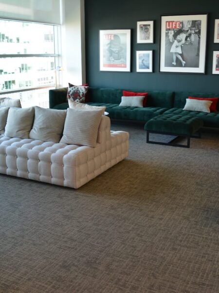 This Project teamed Selby up with our long term partners Bourne Office Space at Crown Place. Once again we used Bournes favourite carpet tile of choice, Milliken Nordic Stories Tectonic to the reception and all offices. In the breakout area, we used Project floors luxury vinyl tiles in a herringbone design and a Harvey Maria luxury vinyl tile in the kitchen which as you will see look absolutely stunning.