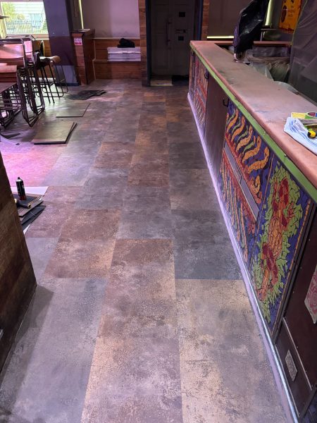 Our dedicated team expertly installed this high-quality LVT, chosen for its durability and eye-catching design, ideal for the restaurants vibrant atmosphere. The blend of Oxyde Brown and Oxyde Bronze Red brought a warm, industrial-chic vibe to the space, creating a welcoming and stylish environment. This project showcases our commitment to delivering exceptional flooring solutions with precision and care.