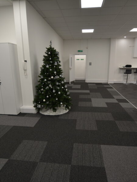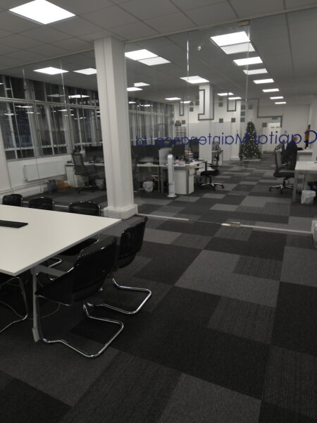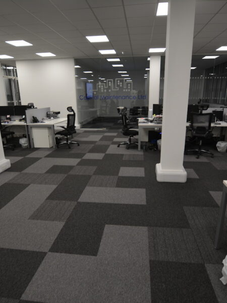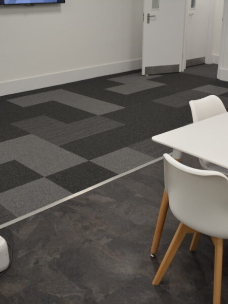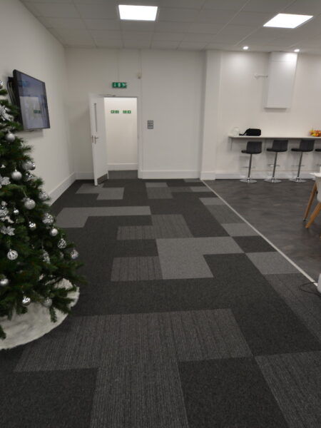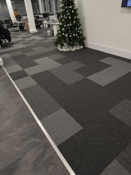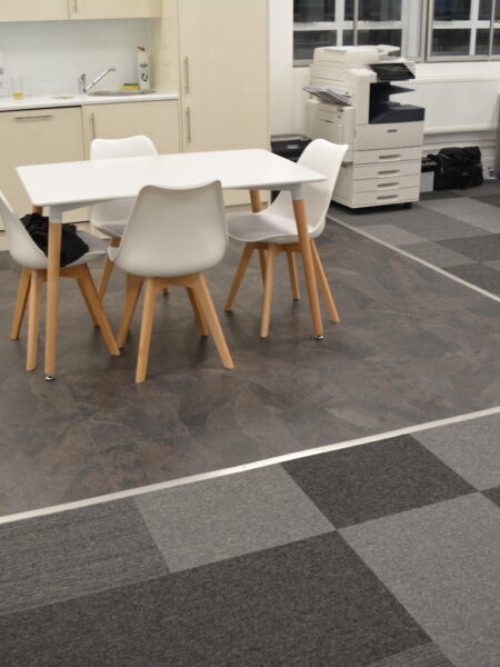 We were recently tasked with installing a new floor for a very good client. Our client was moving out of their smaller offices into this larger office with a lot more space. They wanted a random lay design to add character to their office. With that in mind, we used our free design service to create a bespoke design in IVC Creative Spark col; 987, 989 and 979 were installed for the carpet tiles along with Impress dry back colour Mustang Slate 70968 for the Kitchen/Tea point area. A great end result one extremely happy client.