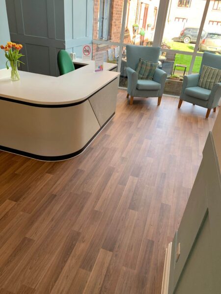 Another fantastic project completed by the Selby installation team. A number of communal and kitchen/breakout areas were completed to the highest of standards at a care home located in Wroughton. Gerflor Taralay Impression Comfort 1314 Walnut wood planks were one fo the many products installed throughout the ground floor.