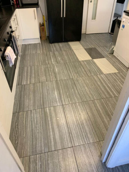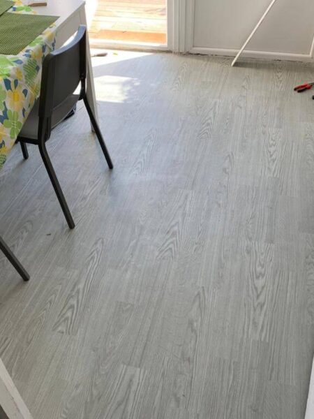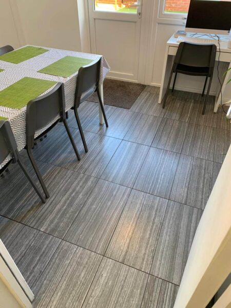 During the prep work, the Selby installation team uplifted and disposed of the existing ceramic tiles to then install a 6mm ply/self-smoothing latex screed. Cozitex cushioned 4m sheet vinyl in the colour slate grey was supplied and installed across the kitchen/breakout area. The new flooring allowed for easy cleaning and maintenance which is perfect for a kitchen area.