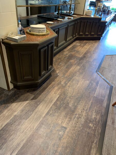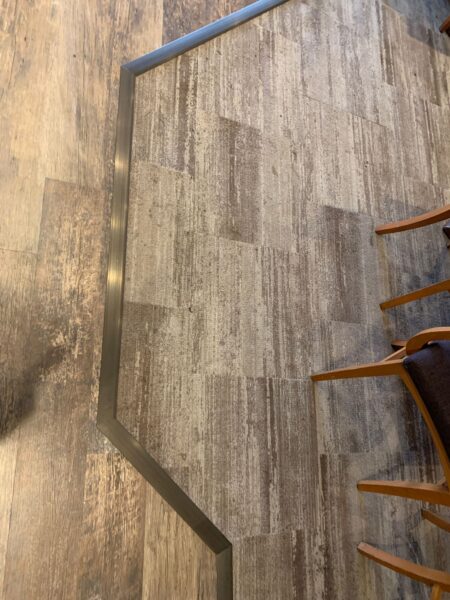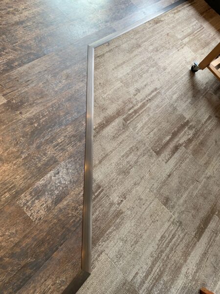 The Selby installation team fitted CAT antique bronze solid base trims to the dining area of a central London hotel. The installation of the new trims separated the carpet tiles from the vinyl planks, also fitted by the Selby team. The Selby team have completed multiple areas at the Danubius hotel including suites, dining areas, kitchen and meeting rooms.