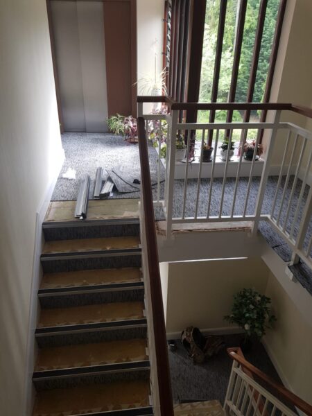 Stair nosings in Milliken Rogue Knit at Falcon Court