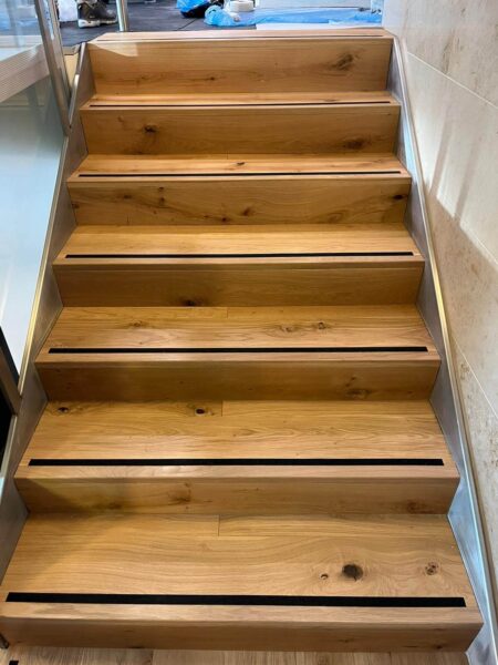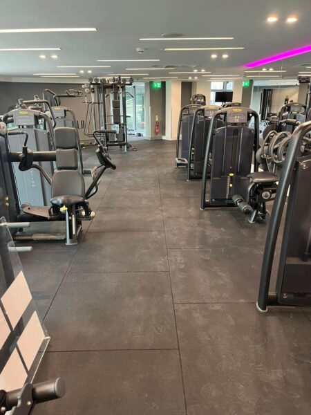 The Selby installation team completed multiple projects within a large ground floor gym located in Pan Peninsula Square. After all areas were prepped and primed, Gerflor Creation 55 Rigid Acoustic Ballerina LVT were installed throughout the main workout area and corridors as this product is equipped to withhold heavy equipment. Whilst Gerflor Taraflex Multi 5742 Wood Oak planks were also installed to an additional workout area along with Zebra Matting fitted throughout the weights area which has resulted in a new, professional finish. Take a look at the before and after!