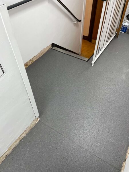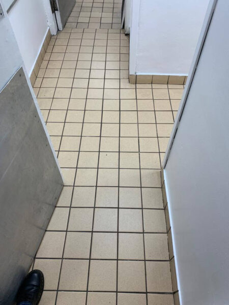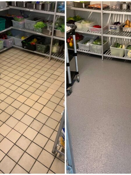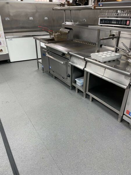 The Selby installation team transformed a central London hotel kitchen area using Polyflor Polysafe anti-slip safety flooring. The team supplied and installed specialist ceramic primer and 3mm Ardex screed to prep the area ready for the new flooring. A full seal to all areas was completed with clear mastic to result in a professional finish. To get the job done the hardworking Selby team worked over the weekend.