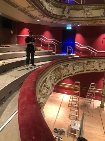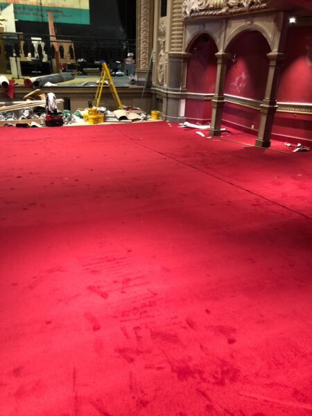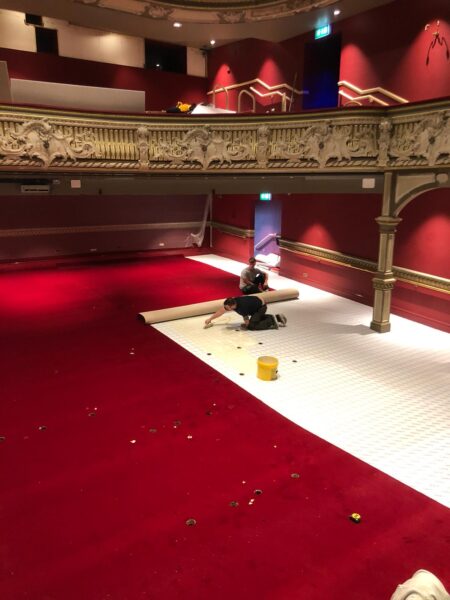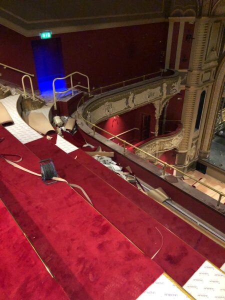 Balcony view of ARC Prominent red carpet installation at the Lyric Theatre in Hammersmith