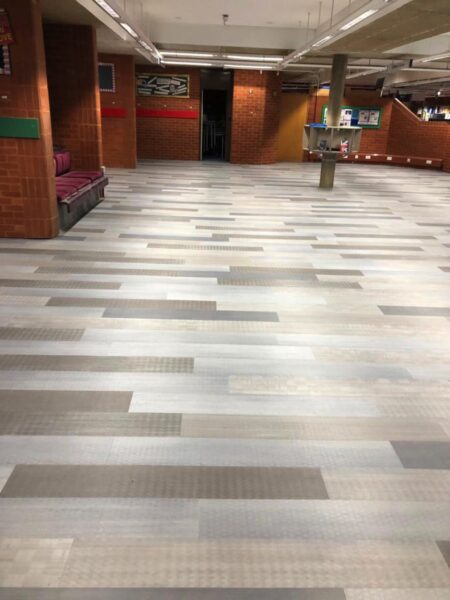 Our client at Maidenhead library wanted to jazz up the children’s section of the library for something a little bit different including a softer play area. They wanted to make it an area that was easy to maintain and clean as well as being more fun for the children using the library. After seeing the area on our free of charge site survey we put forward IVC 55 Mystical for the main area as we felt it was a little bit more exciting in a children’s area than standard vinyl planks and Gerflor sports floor for the reading area as it comes in a range of thicknesses and colours. As you can see the finish look amazing.