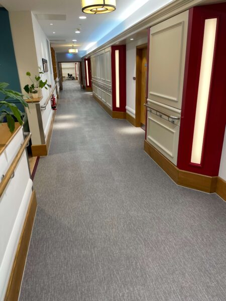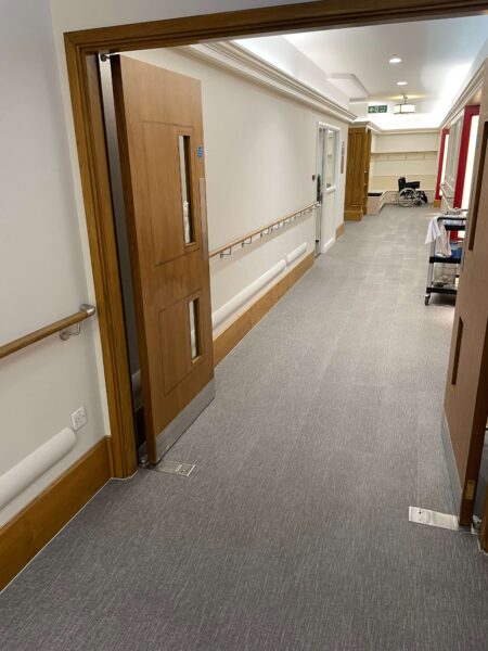 One of our favourite projects of 2023 is currently being completed at the iconic Margaret Thatcher Infirmary including corridors, bedrooms, kitchen areas and bathrooms. Our installation team is continuing to work across all levels of the heritage building. A number of materials are being used to complete a number of floors including Gerflor Creation 70, Gerlor Taralay Impression Control, Shaw IKAT Unltralock, Forbo Surestep Laguna, Polyflor Wood FX, Ege Carpet Highline and Shaw Rethink Luxury Woven Tile LVT. The 1st floor looks incredible!