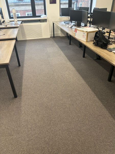 The team successfully completed a lift and shift project for a small office, where we removed the old carpet tiles and installed new Burmatex carpet tiles over a weekend.