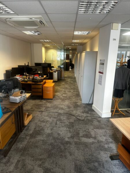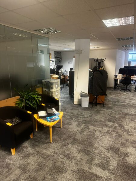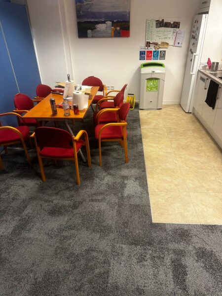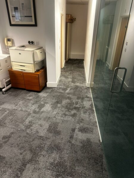 The open-plan area, along with several private offices and corridors, was fitted with Interface Composure carpet tiles. The client was thrilled with the results, and the office now looks incredible.