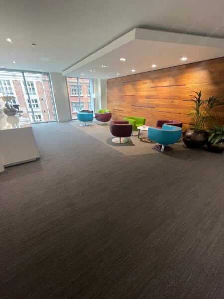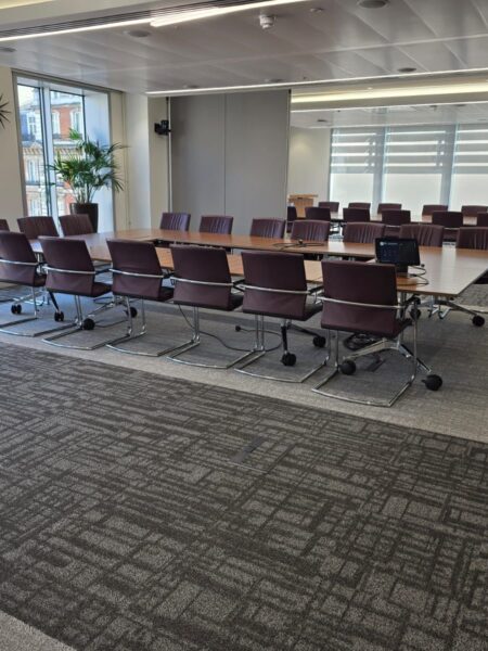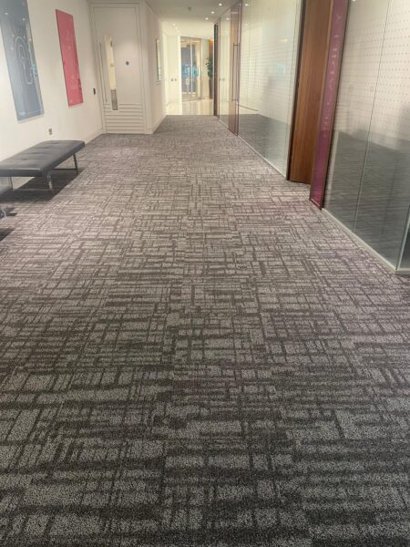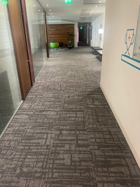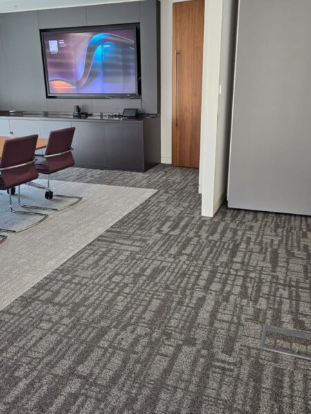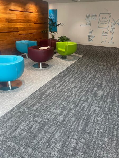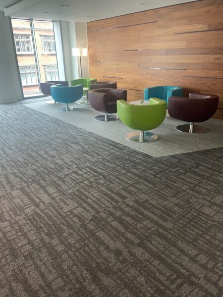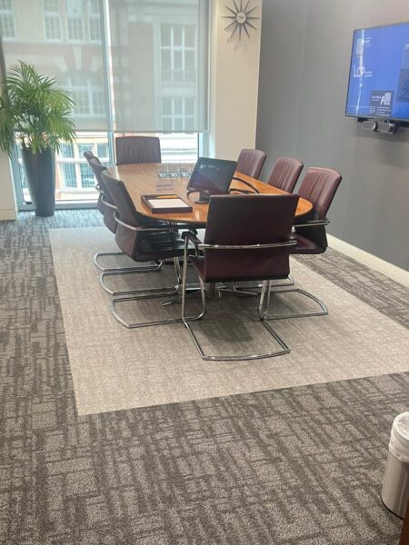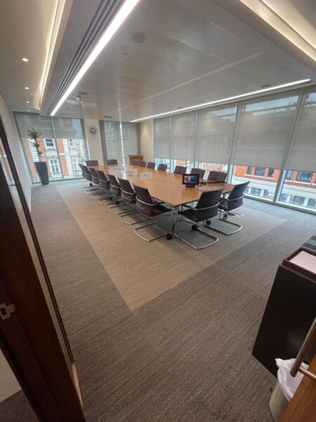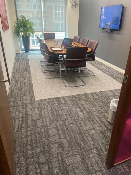 The recent project involved the installation of Shaw carpet tiles across a central London office, including meeting rooms, corridors and general workspaces.