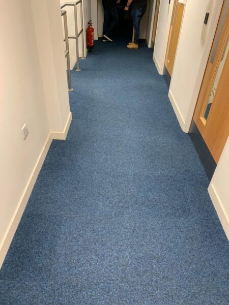 The Selby installation team work 24/7 to get the job done! The dedicated team supplied and installed Forbo Tessera Chroma carpet tiles to a number of offices, corridors and staircases. As well as preparing the subfloor, and installing Altro Walkway Dolphin where the existing vinyl was placed. The client was thrilled with the transformation!
