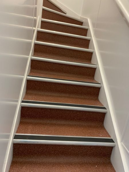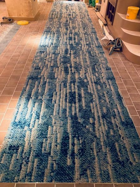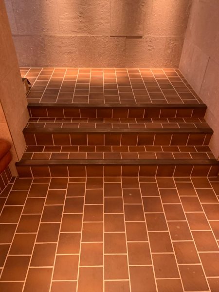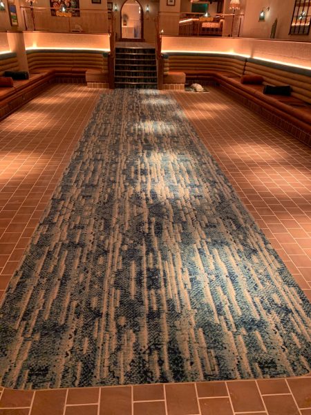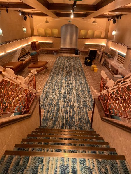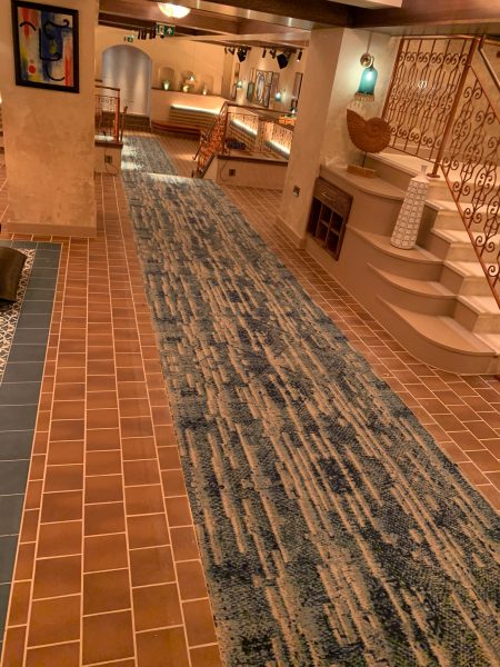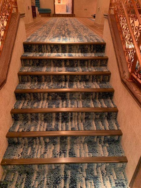 The Selby installation team transformed this stunning restaurant located in the heart of Mayfair, London. The grand entrance area and staircase were transformed by the addition of a striking white and blue patterned carpet centre piece. Morleys Antique Brass nosings were fitted to finish off the breathtaking transformation and are in keeping with the traditional aspects of the interiors.