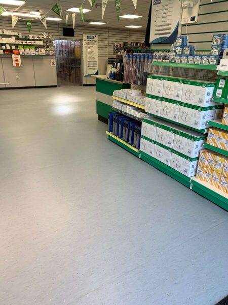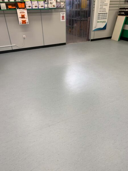 The Selby installation team supplied and installed primer and 3mm self smoothing latex screed throughout the large retail space. In preparation to install Polyflor – Polysafe 2000 PUR safety flooring, in the colour Stonewall 8230, using manufacturers recommended adhesive and method of fitting. This was laid up to the existing skirtings and sealed using mastic which resulted in a clean, professional finish.