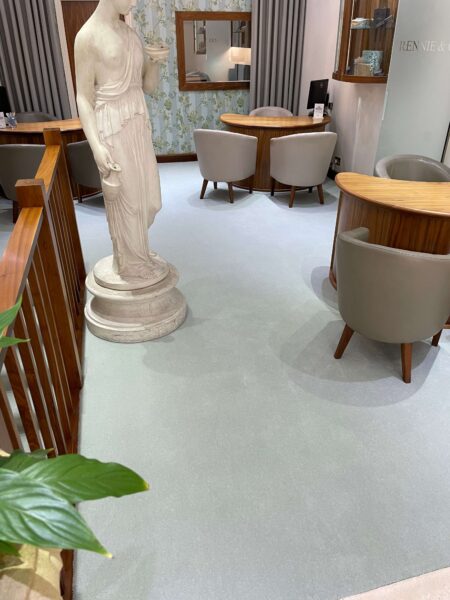 Another stunning transformation completed by the Selby installation team located in Hatton Garden. Westex Ultima twist carpet in the colour Opal was installed throughout the shopfloor and staircase. The client was thrilled with the transformation!