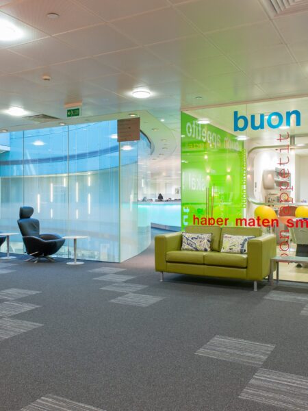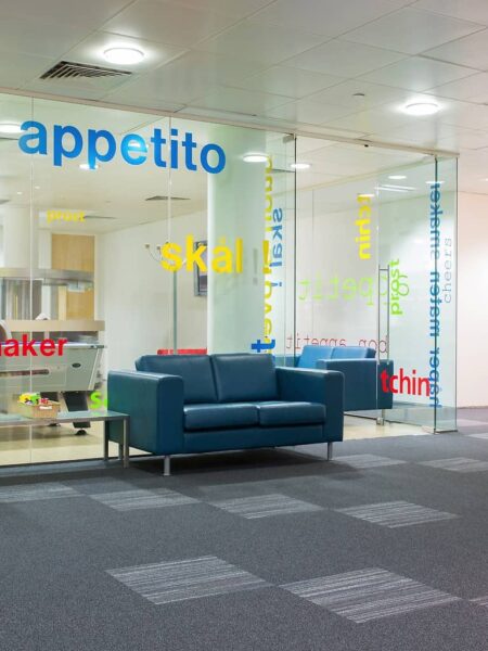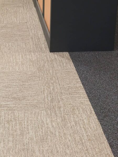 This corporate office in the heart of the City of London wanted to replace the stained old carpet tiles to a more professional look. We uplifted and recycled their old tiles. Installed 1200m2 of new tiles moving all their existing furniture and supplied and installed this Fernlea carpet tile with feature tiles. This design was done by our installers and the clients love it.