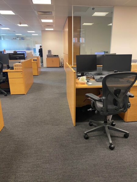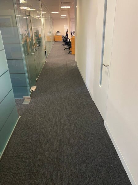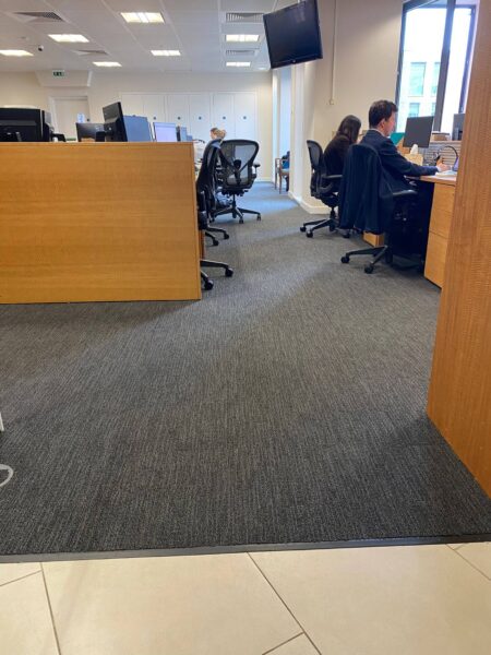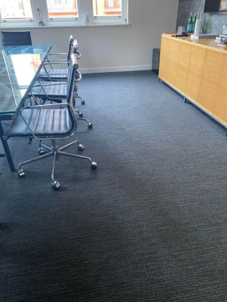 The Selby installation team brought this serviced office back to life with a new flooring installation. Milliken Nordic Stories Isograd carpet tiles in the colour Dark Dansk were installed to create a professional finish that the client was thrilled with!