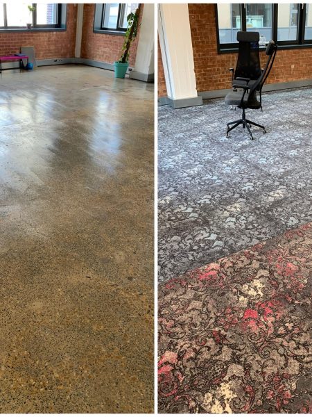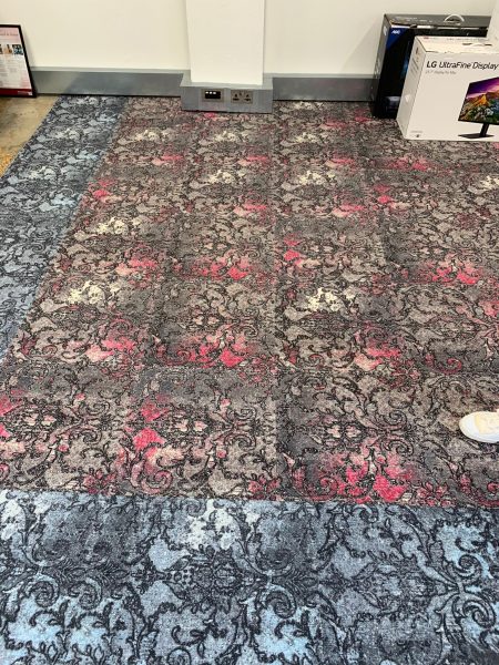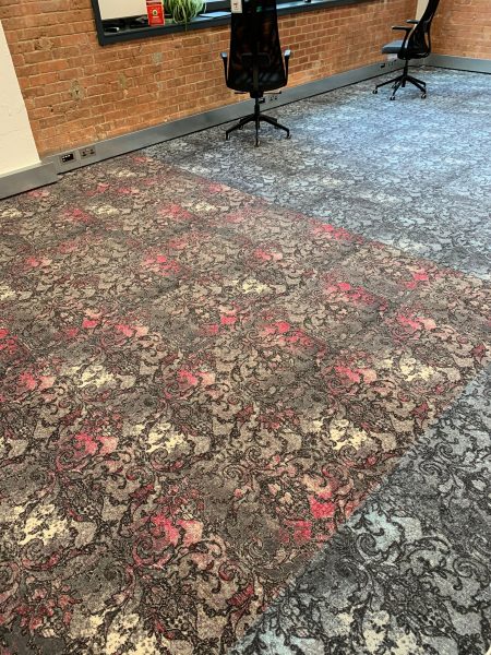 A stunning transformation at Vox Studios Workspace located in SE11. Milliken Artistic Liberties (Outspoken Tradition) carpet tiles were fitted throughout the large workspace to create a unique, breath-taking pattern. The pure pink colour carpet tiles were used to highlight the many breakout areas without the need of individual rooms. Overall, the mixture of the two colour ways creates a seamless effect throughout the workspace and is somewhere their staff can be proud of!