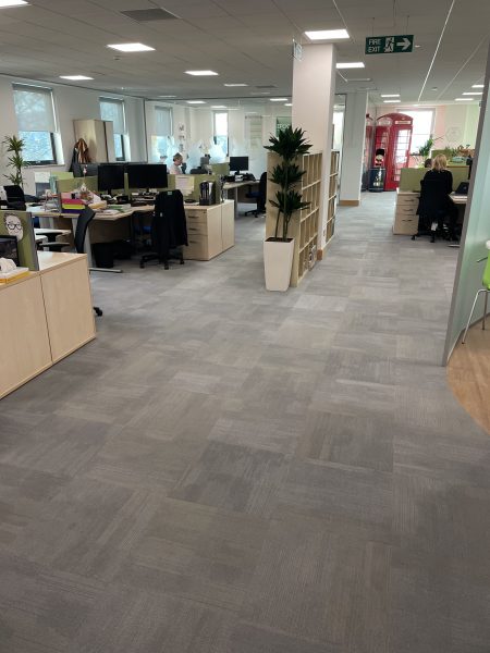 Another great transformation by the Selby installation team. The existing dull, worn-out carpet tiles through the workspace were replaced byForbo Tessera Contour colour 1906 Rising Ash carpet tiles. The mixture of colours throughout each tile brightens up the entire office and ties in perfectly with the interior design. The client was delighted with how professional the Selby team was.