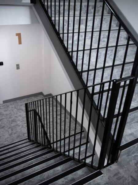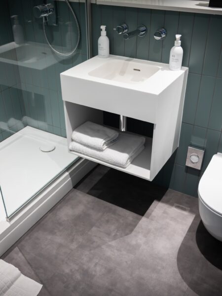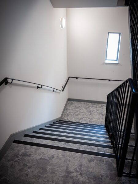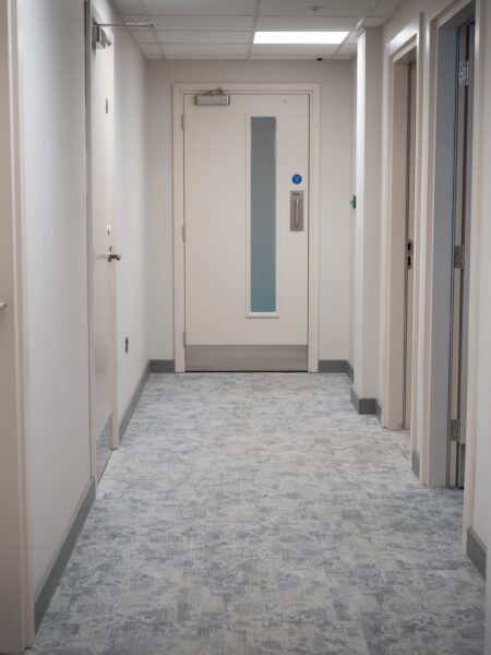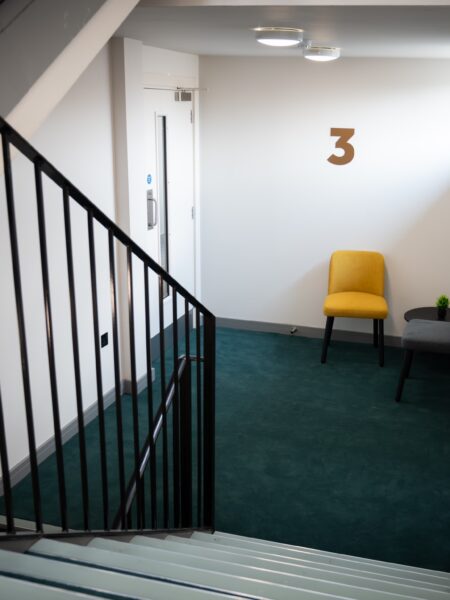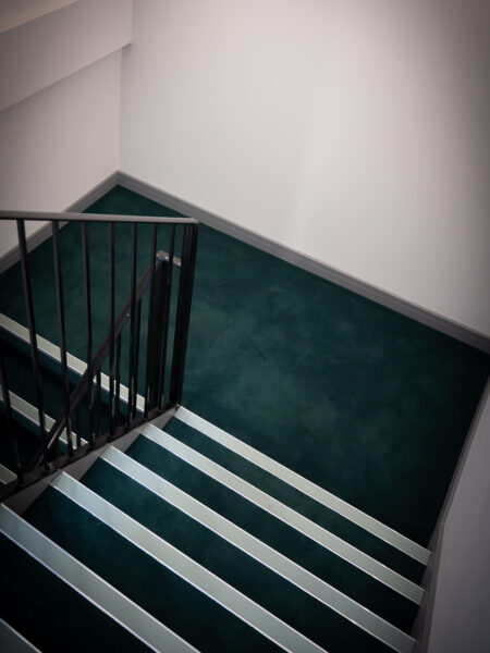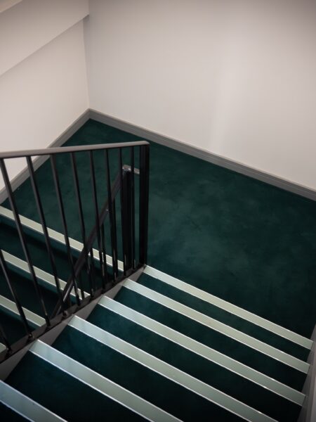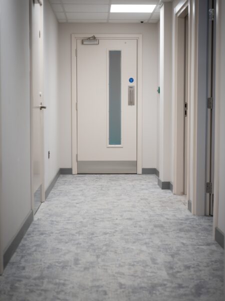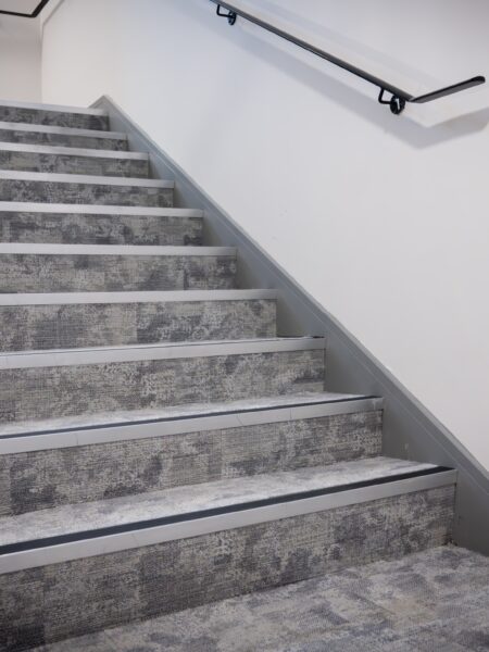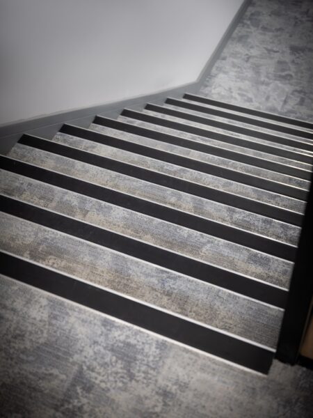 The corridors and the green staircase feature Ege Carpets, providing durability and elegance. The grey design staircase was fitted with Milliken carpets, known for its modern aesthetic and quality. The front reception area showcases IVC Luxury Vinyl Tile (LVT), chosen for its sophistication and durability. The bedroom areas were fitted with a charcoal laminate flooring. This project highlights our dedication to delivering high-quality flooring solutions tailored to the client’s needs.